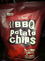 Now the chips were Disney Kettle Cooked BBQ Potato Chips. Add to that a red silhouette of Pluto and the words "barkin flavor" on the and how can you lose? They were regular chips, kettle cooked with a nice crunch. The seasoning is light and sweet with brown sugar. On the good side they're gluten free and have no transfat.